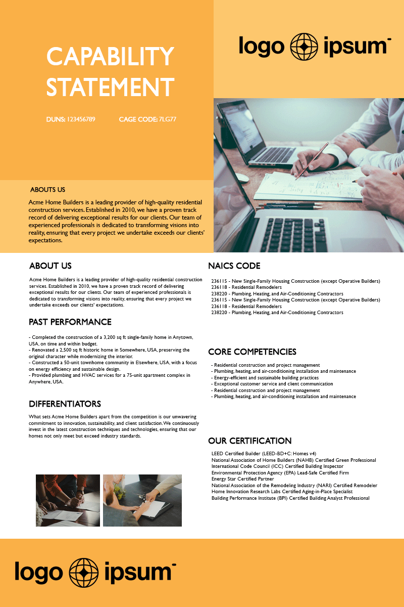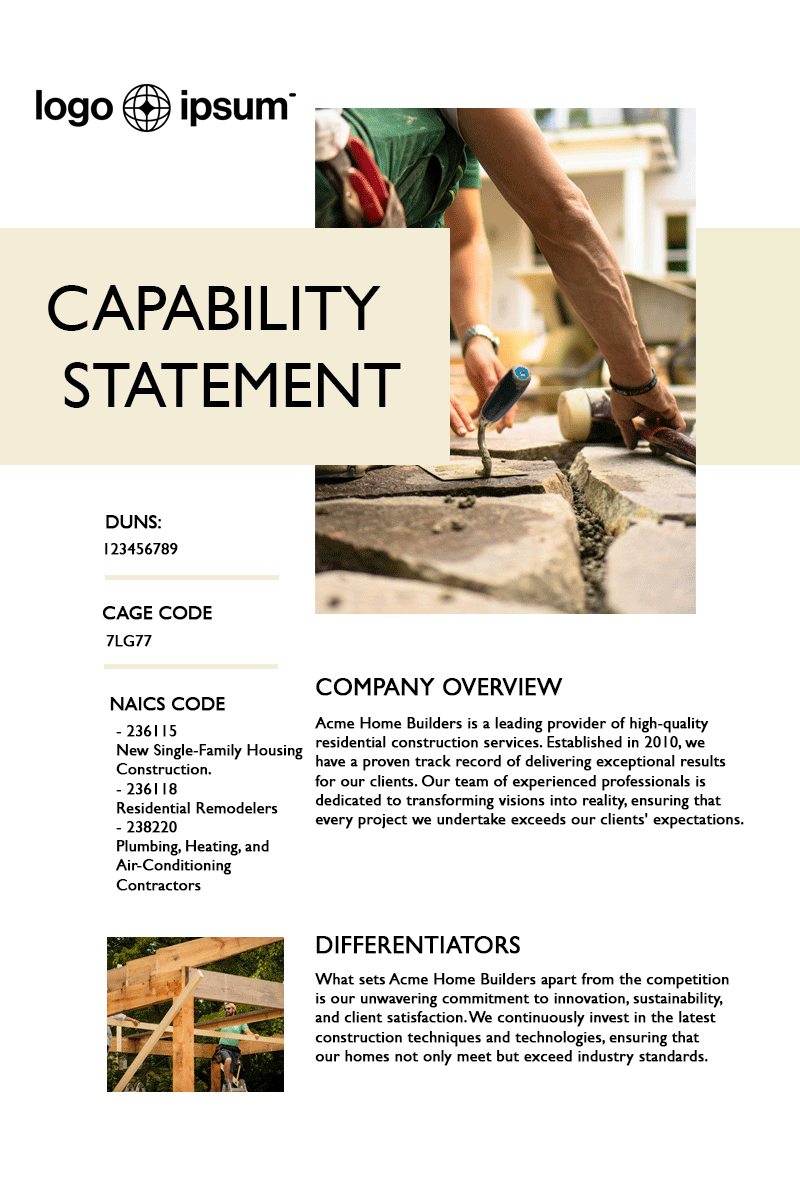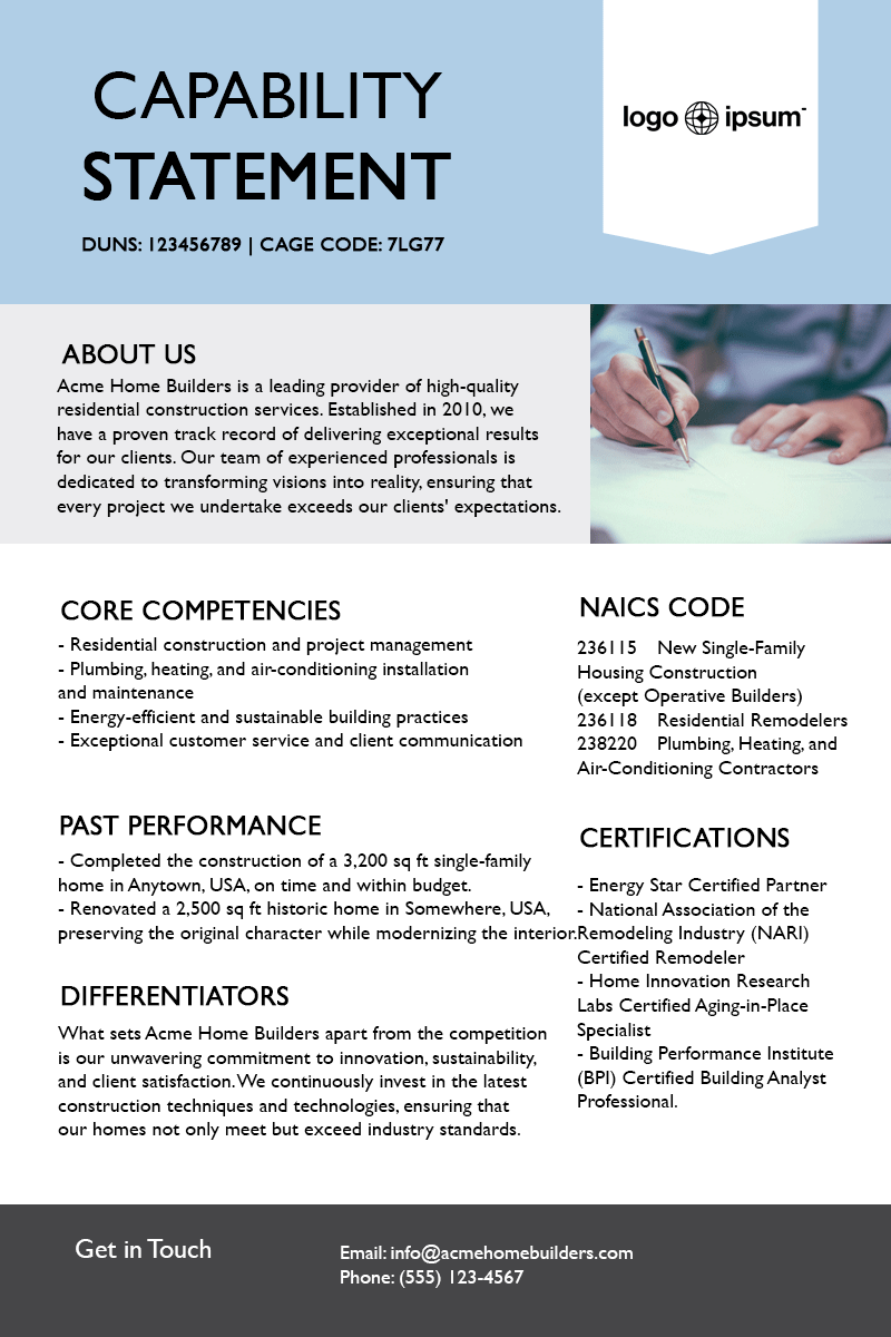 Trusted by thousands of government contractors for creating standout Capability Statements.