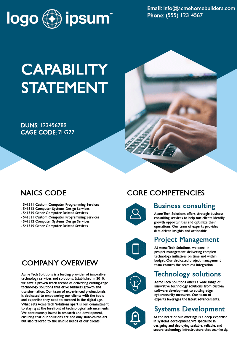 Fantastic resource! The Capability Statement templates are user-friendly and allow you to create a polished document in no time. Highly recommended.